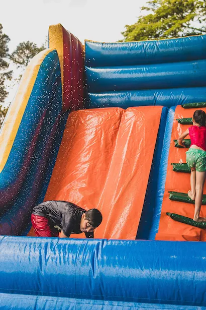 Safety is our top priority. We ensure that all our inflatables meet safety standards and are regularly inspected and cleaned. Upon delivery, our trained staff will set up the inflatable and provide you with detailed safety instructions. It is important to supervise all children using the inflatable at all times and adhere to the specific guidelines, such as weight limits and the number of users allowed at one time. We also recommend setting up the inflatable on a flat, open area away from any hazards like trees, fences, or power lines. In case of bad weather, particularly high winds or lightning, use of the inflatables should be discontinued immediately.